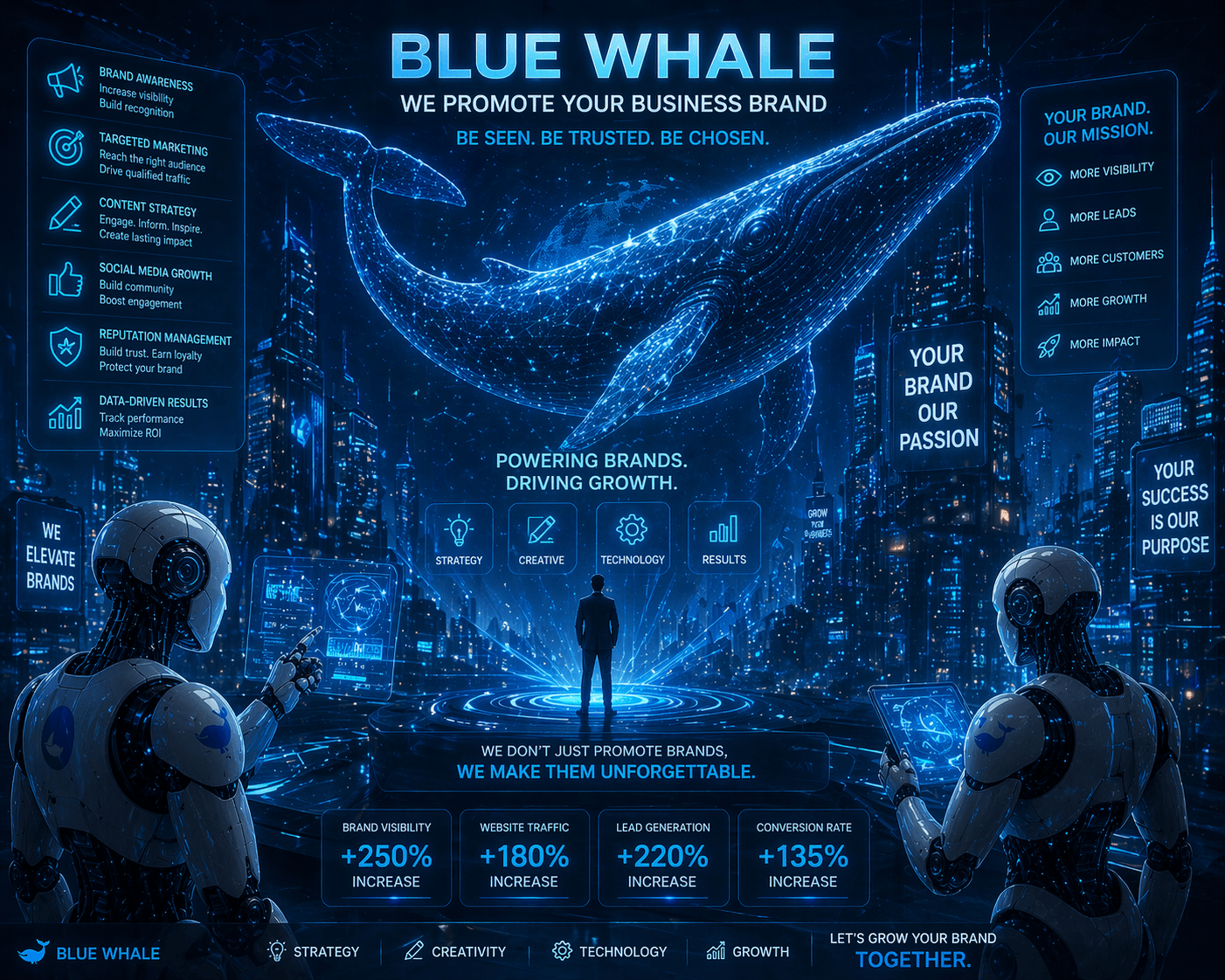 We do this by taking the time to understand our customer’s needs while taking an omni-channel approach. We will grow your business through an optimized marketing strategy. We can help you create a fresh, responsive website design, and run an eyecatching marketing campaign to bring in new customers and increase sales. The team at Blue Whale bring an all-encompassing marketing approach that helps your business get more leads and reach its full potential. A marketing campaign helps get your brand name out there so potential customers find your business first, as opposed to finding your competitors’ sites. Let’s get this conversation started!